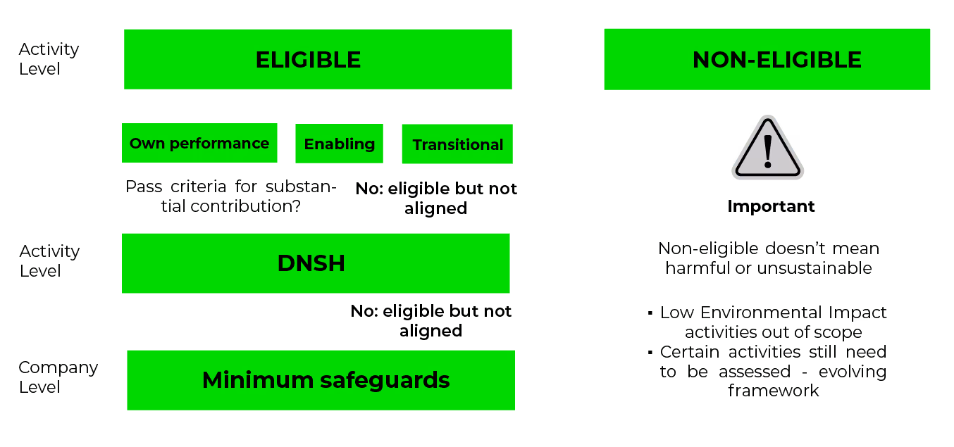 - Assess the eligibility of your company's activities with the taxonomy objectives.
